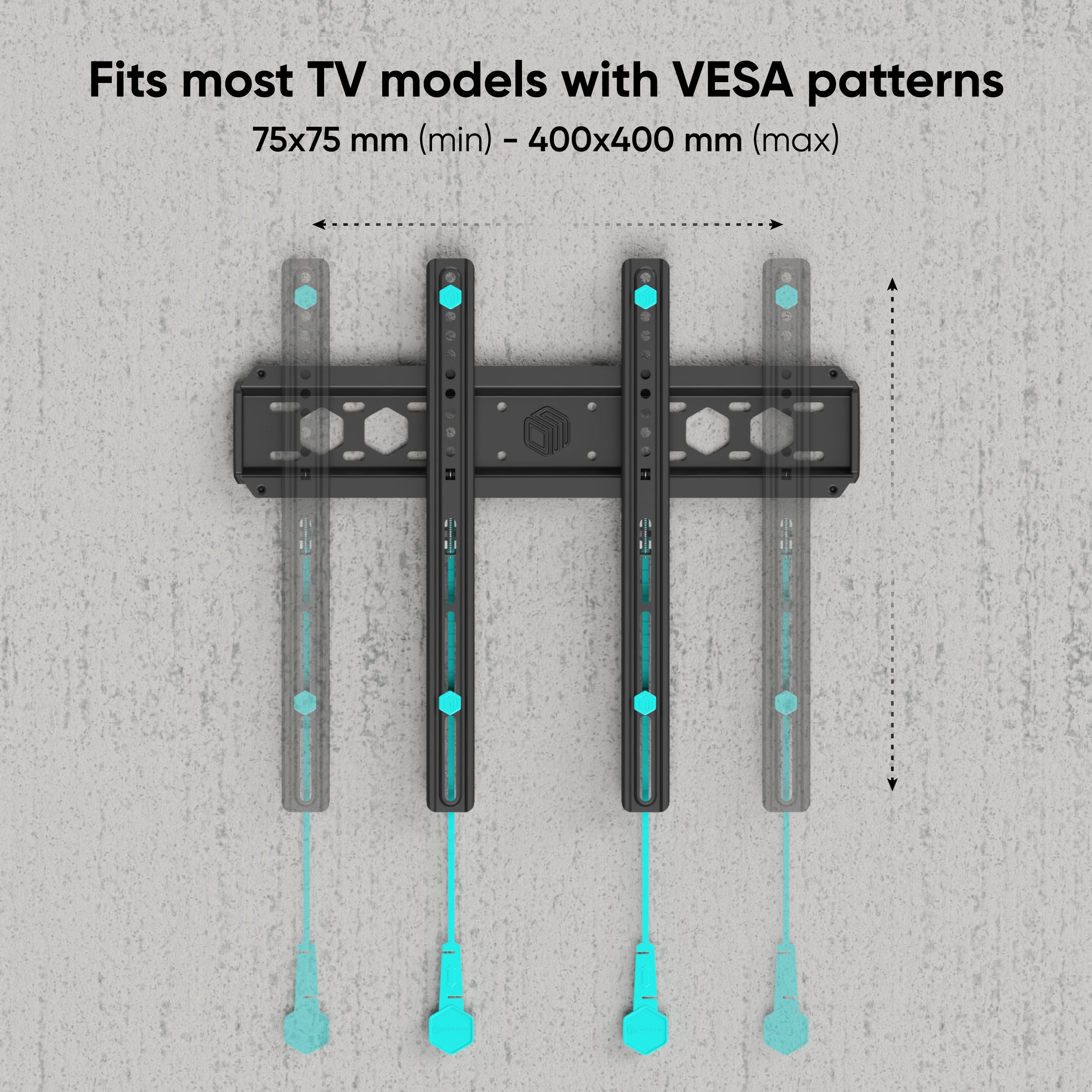 Ich habe die Halterung für meinen 65-Zoll Fernseher der Marke Samsung gekauft. Die Anbringung der Halterung mit der Schablone war kinderleicht. Weiterhin befinden sich verschiedene Schrauben im Lieferumfang, für die unterschiedlichen Fernseher. Auch ist alles beschriftet gewesen, damit man genau nach Anleitung vorgehen kann.Das Einzige ist, dass ich extra Dübel für unsere Wand besorgen musste, weil die im Lieferumfang befindlichen nicht gehalten haben. Bei der Wand hat es sich um eine Beton gehandelt.Bislang ist der Fernseher seit ca. einem dreiviertel Jahr an der Halterung angebracht. Der Abstand zur Wand ist auch nur minimal.