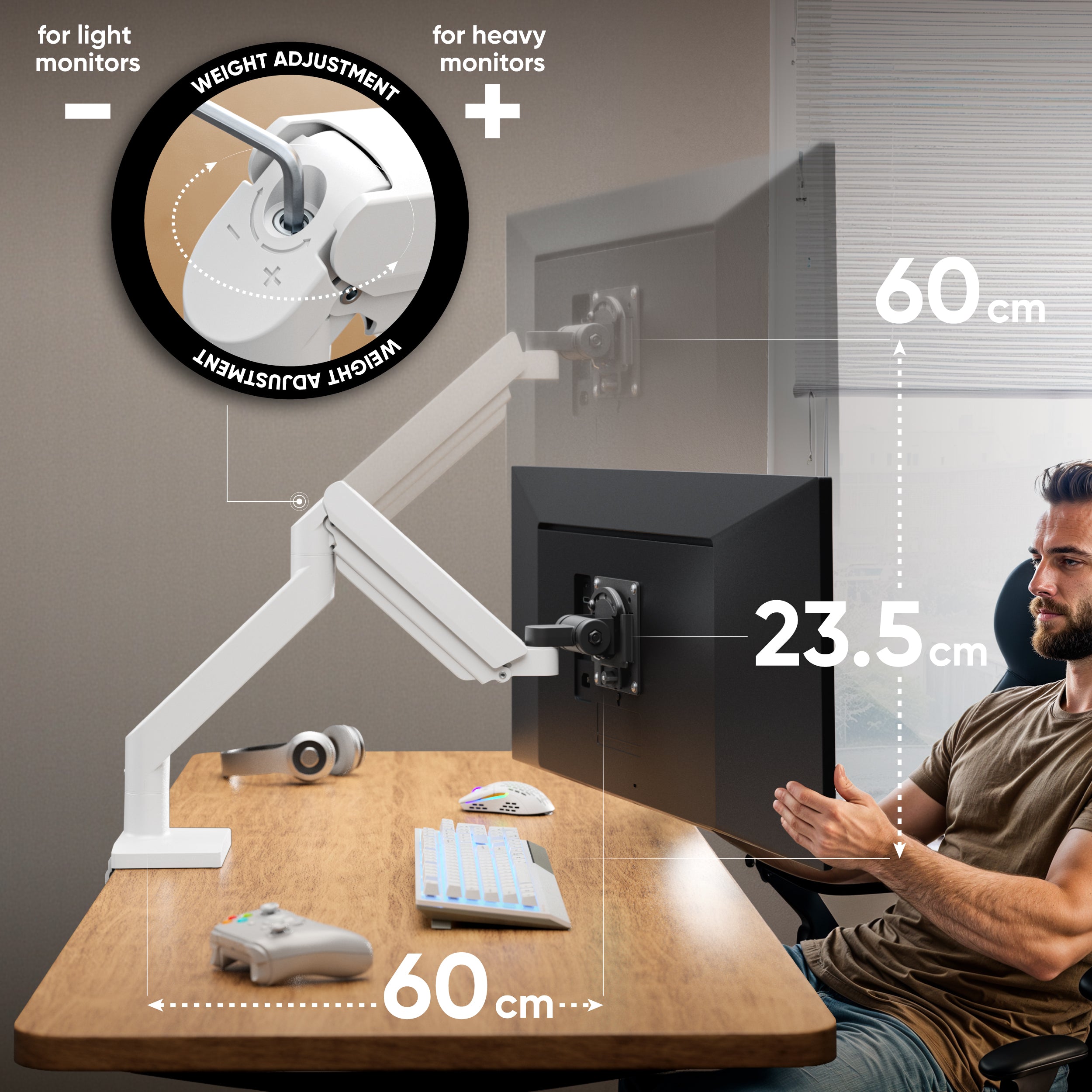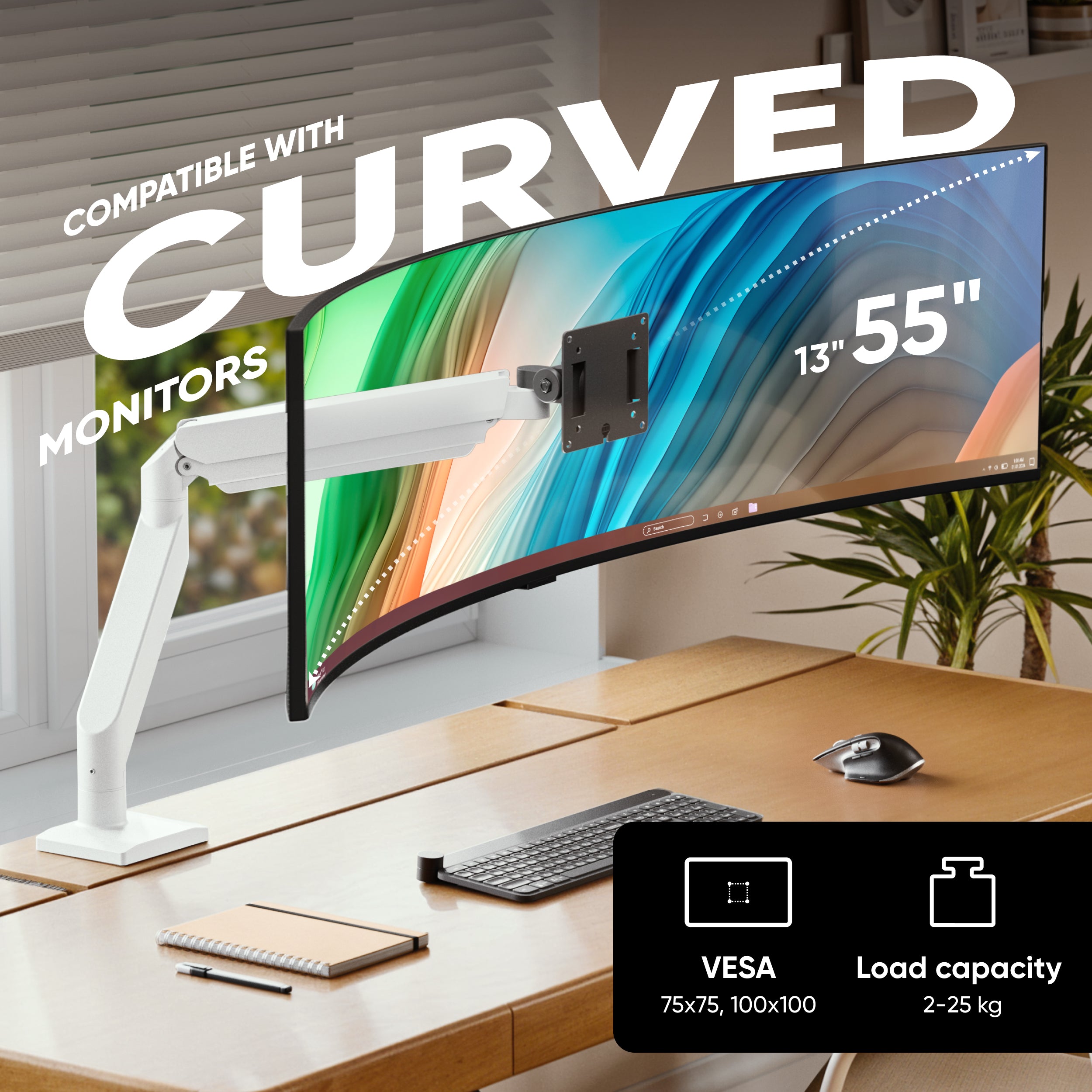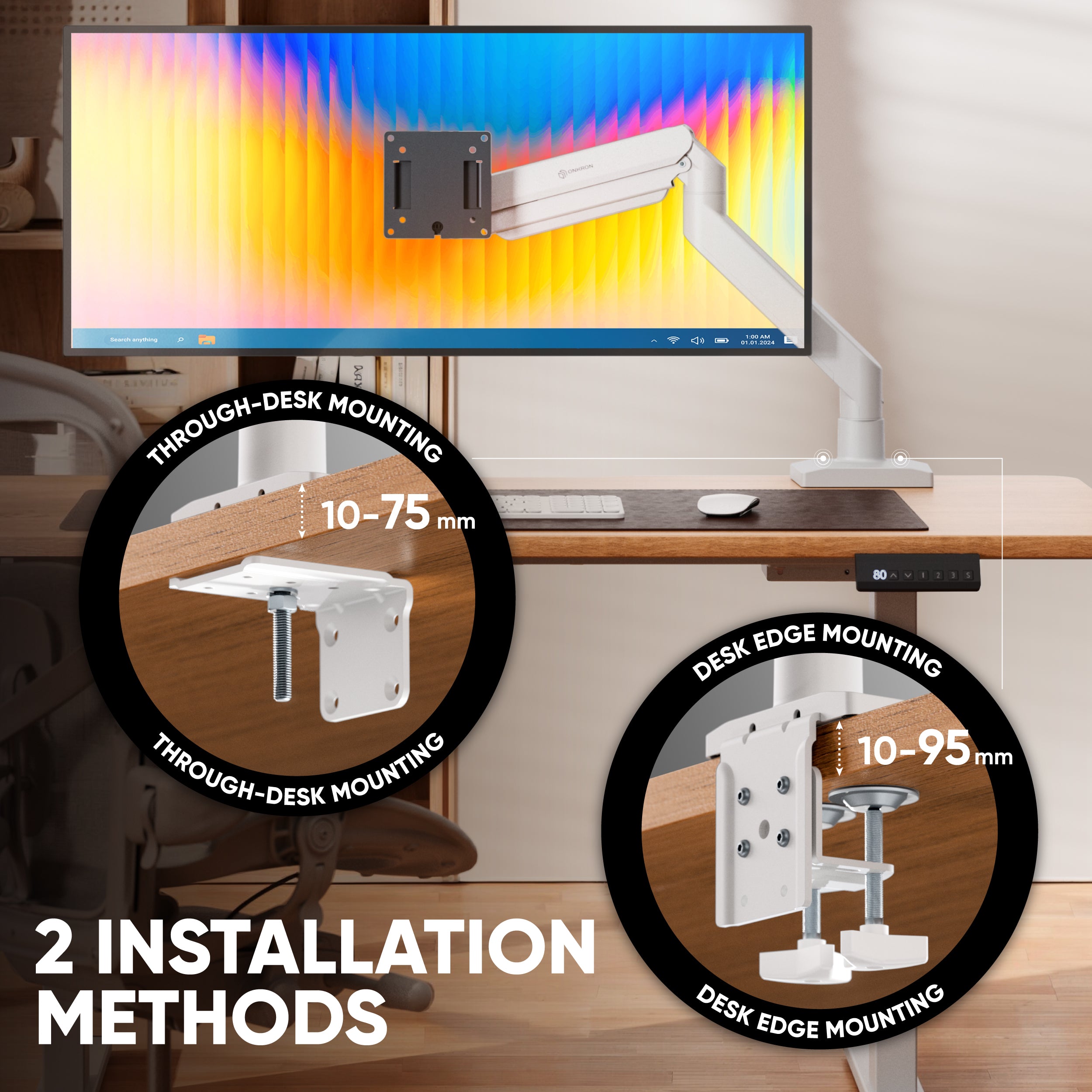 Desk Mount for Monitor 13"-55" max 25 kg, Tilt-Swivel, with Rotation, White-black G110 is backordered and will ship as soon as it is back in stock.