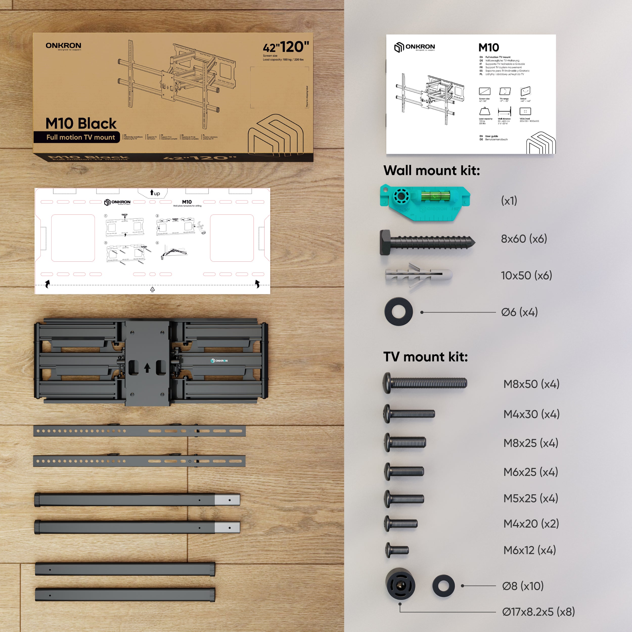 Full-Motion TV Wall Mount for 42"-120" max 100 kg, Black M10 is backordered and will ship as soon as it is back in stock.