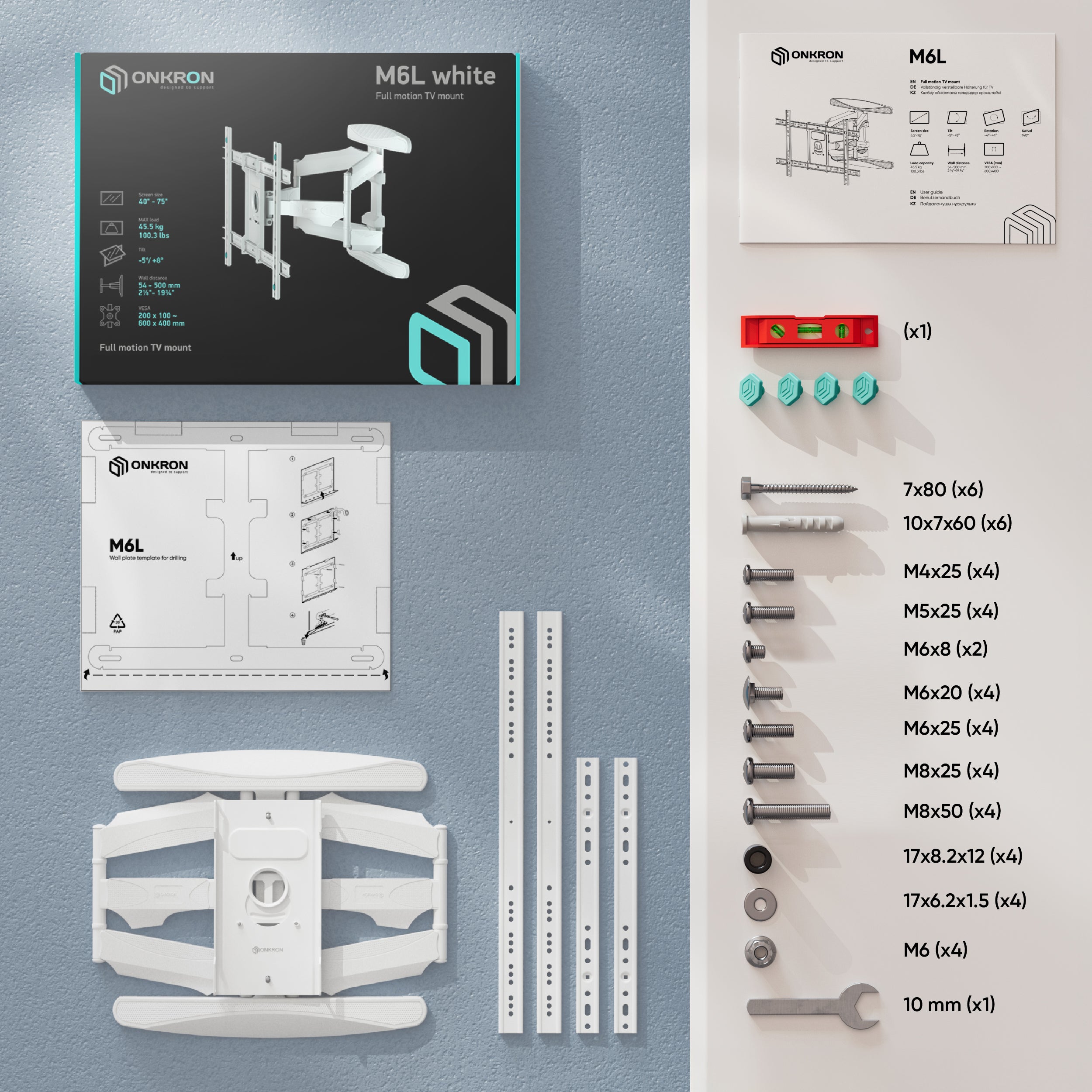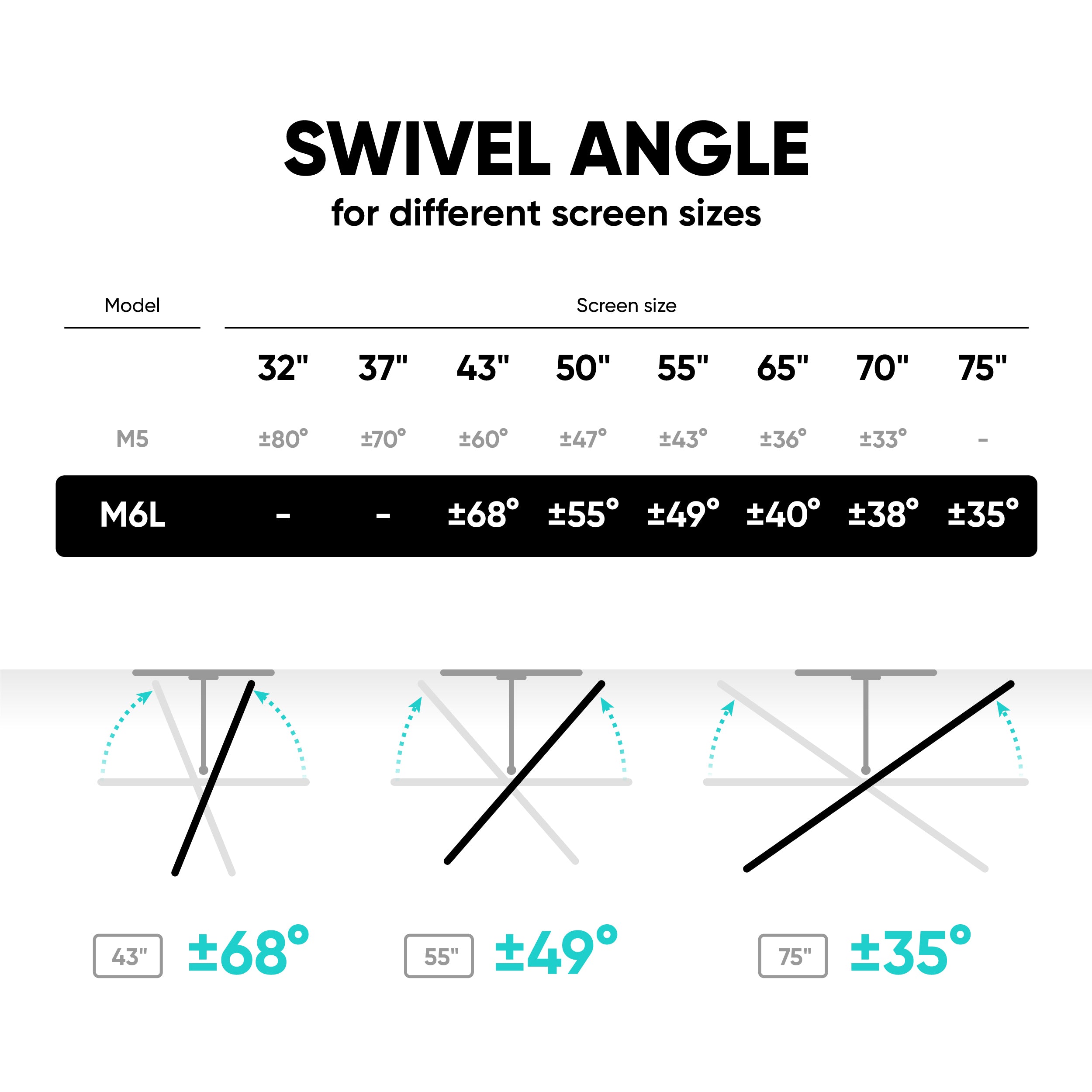 Tilting and swiveling TV bracket for 40"-75" max 46 kg, white M6L is backordered and will ship as soon as it is back in stock.