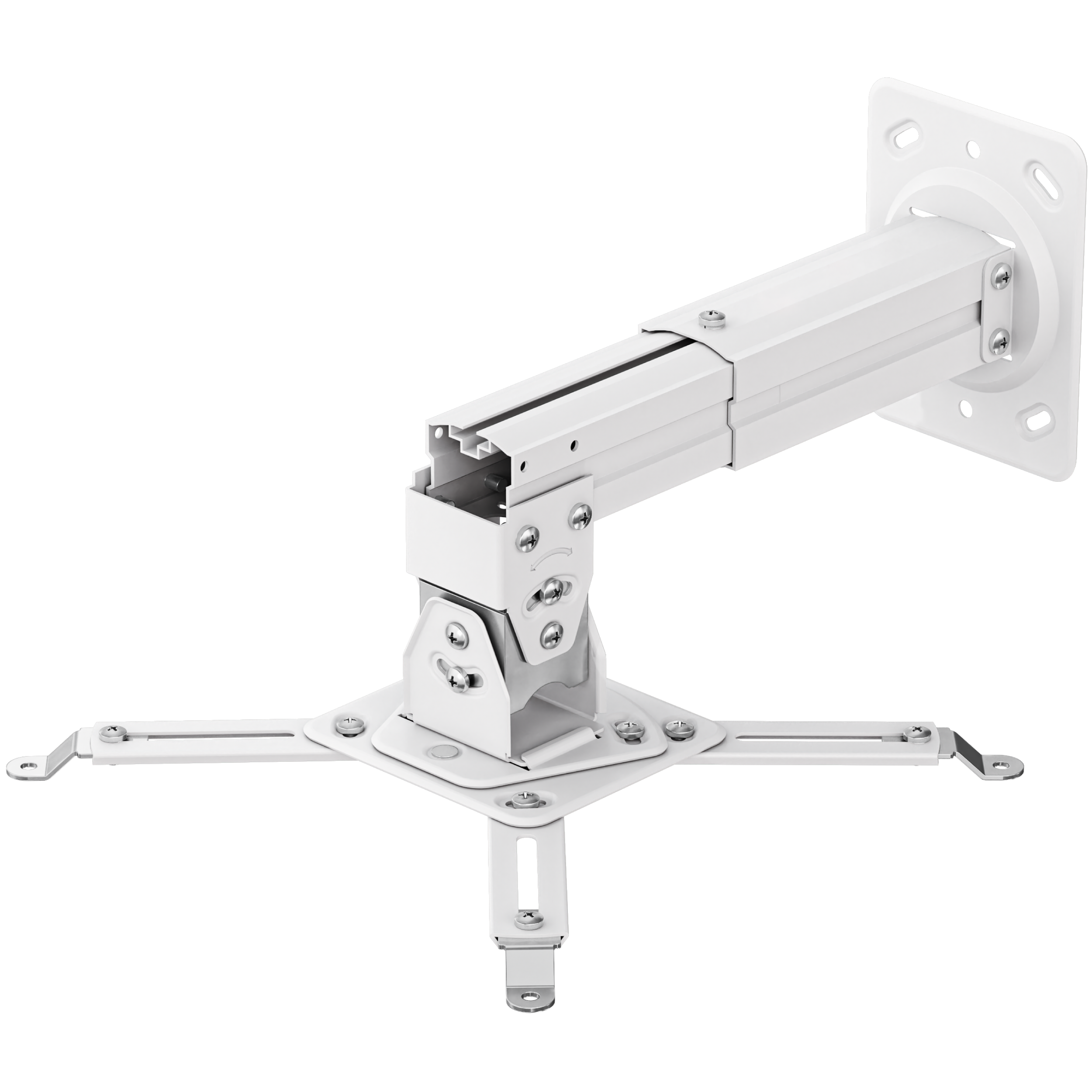 This isn't a a very rigid mount, but it can wall mount to a stud with just two screws. My projector is 7-8 lbs and the mount does sag a little. The hardware bag did not contain screws to attach to the mount to the projector, so plan on ordering that separately.
