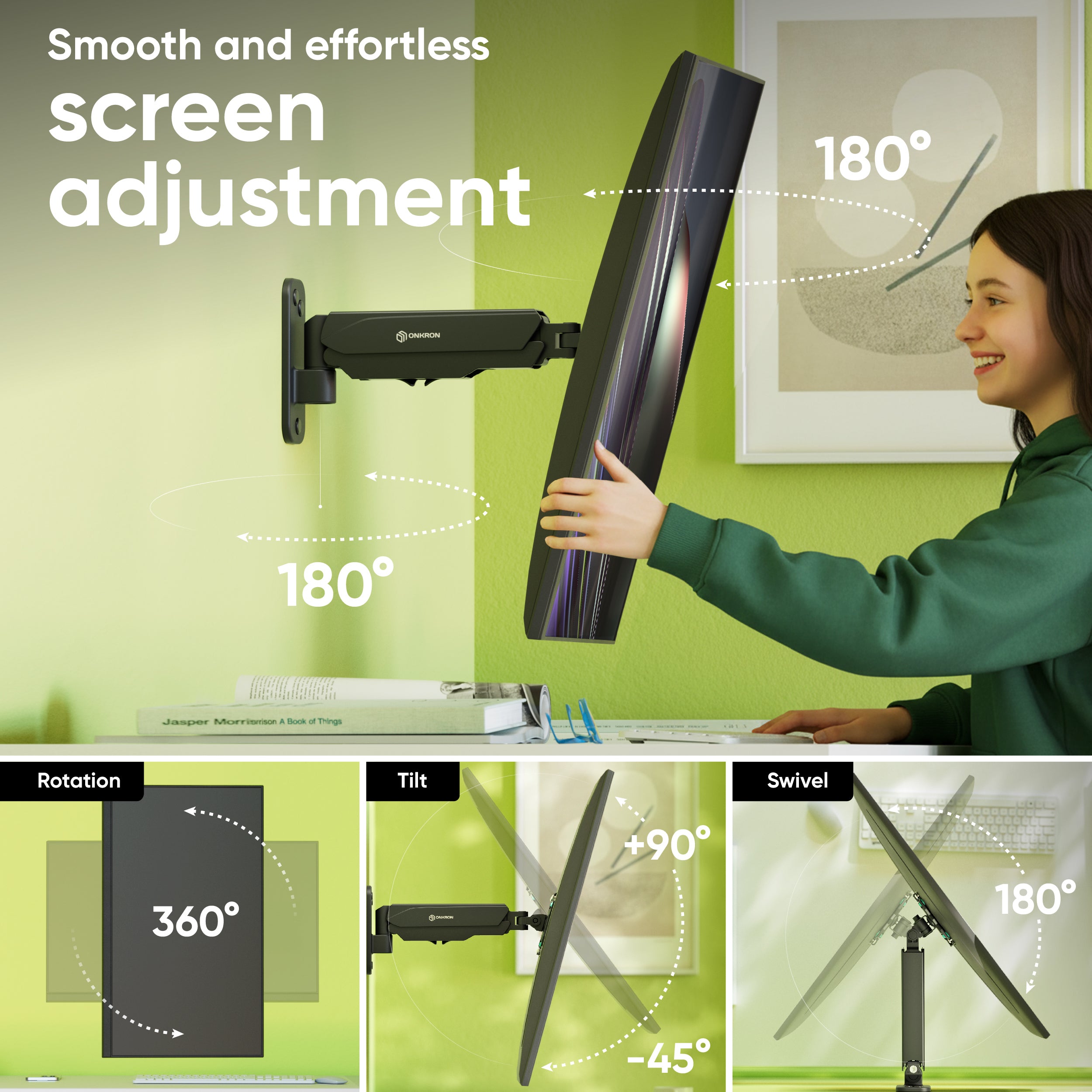 The quality of the design, material and range of motion has met our expectations and needs. We use it for a 34" Smart TV for a home gym and functions great for adjustment of the TV angle depending on what area and type of workout going on. Very happy with it and would recommend it.